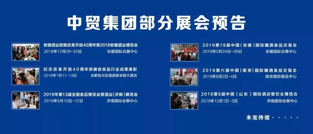 中貿(mào)集團(tuán)每年在全國各地主辦30余場大型博覽會,其中糖酒食品類展會每年在山東、安徽、江蘇、黑龍江等省市舉辦12場以上,是全國區(qū)域性糖酒會巡回辦展的締造者、中國最大的區(qū)域性酒博會及食品展主辦者。中貿(mào)集團(tuán)擁有6萬余家合作的參展商,300萬多家經(jīng)銷商、采購商數(shù)據(jù)資源,形成聯(lián)動(dòng)招商、資源互動(dòng)和共享。在舉辦食品類展會上有著龐大的資源和辦展優(yōu)勢。